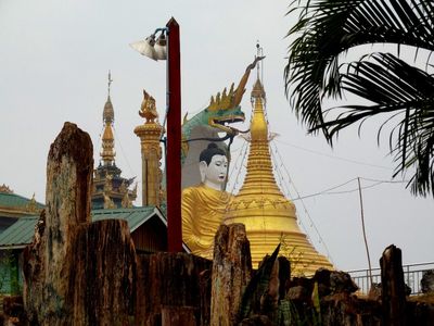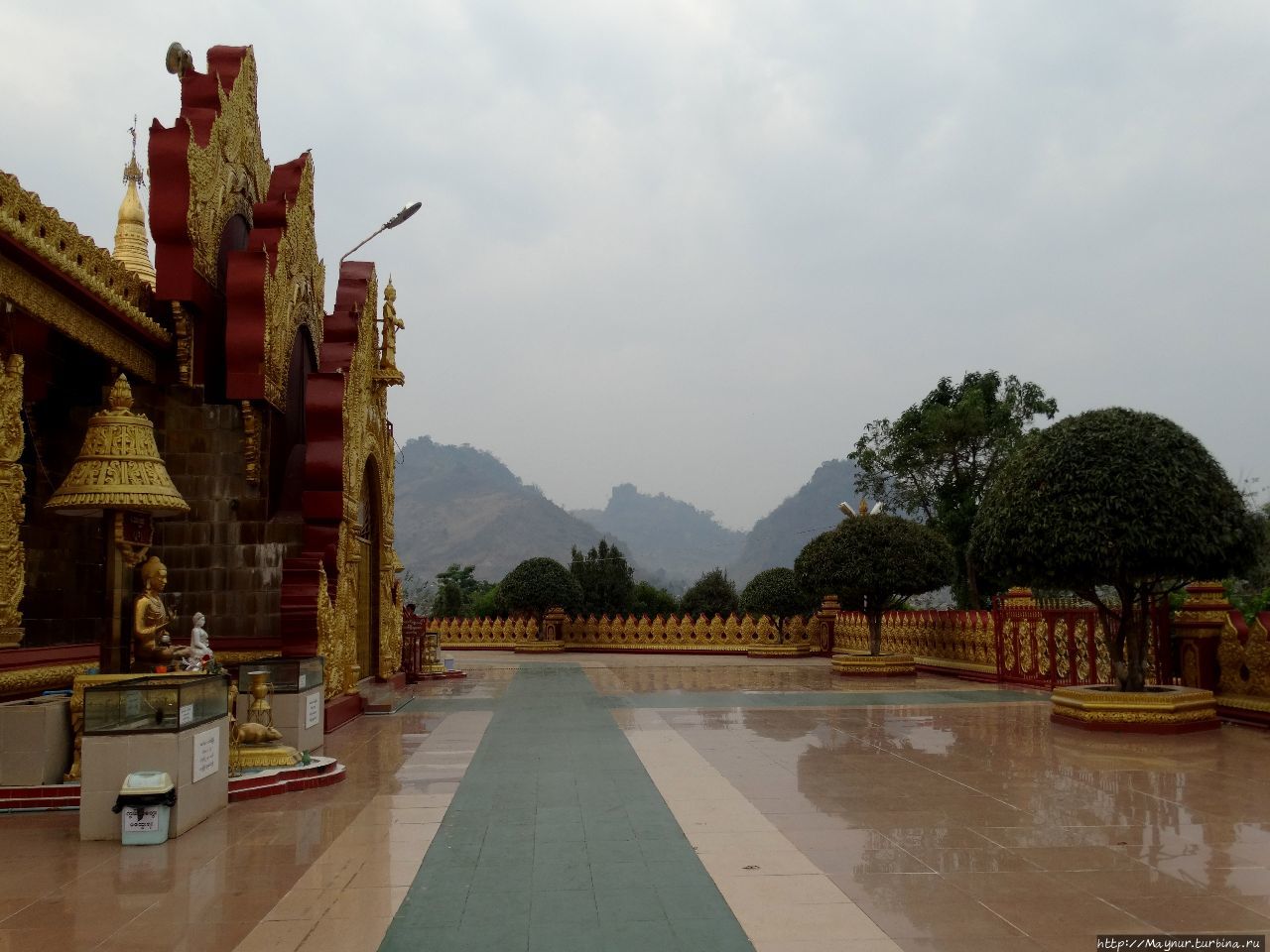 а за ней на возвышенности сияла верхушка огромной пагоды. Нам туда!Получилось так, что к пагоде мы подошли с задней стороны, где стоял забор. Делать нечего, забор одолели и сразу попали на чистую, ухоженную территорию, что приятно обрадовало.