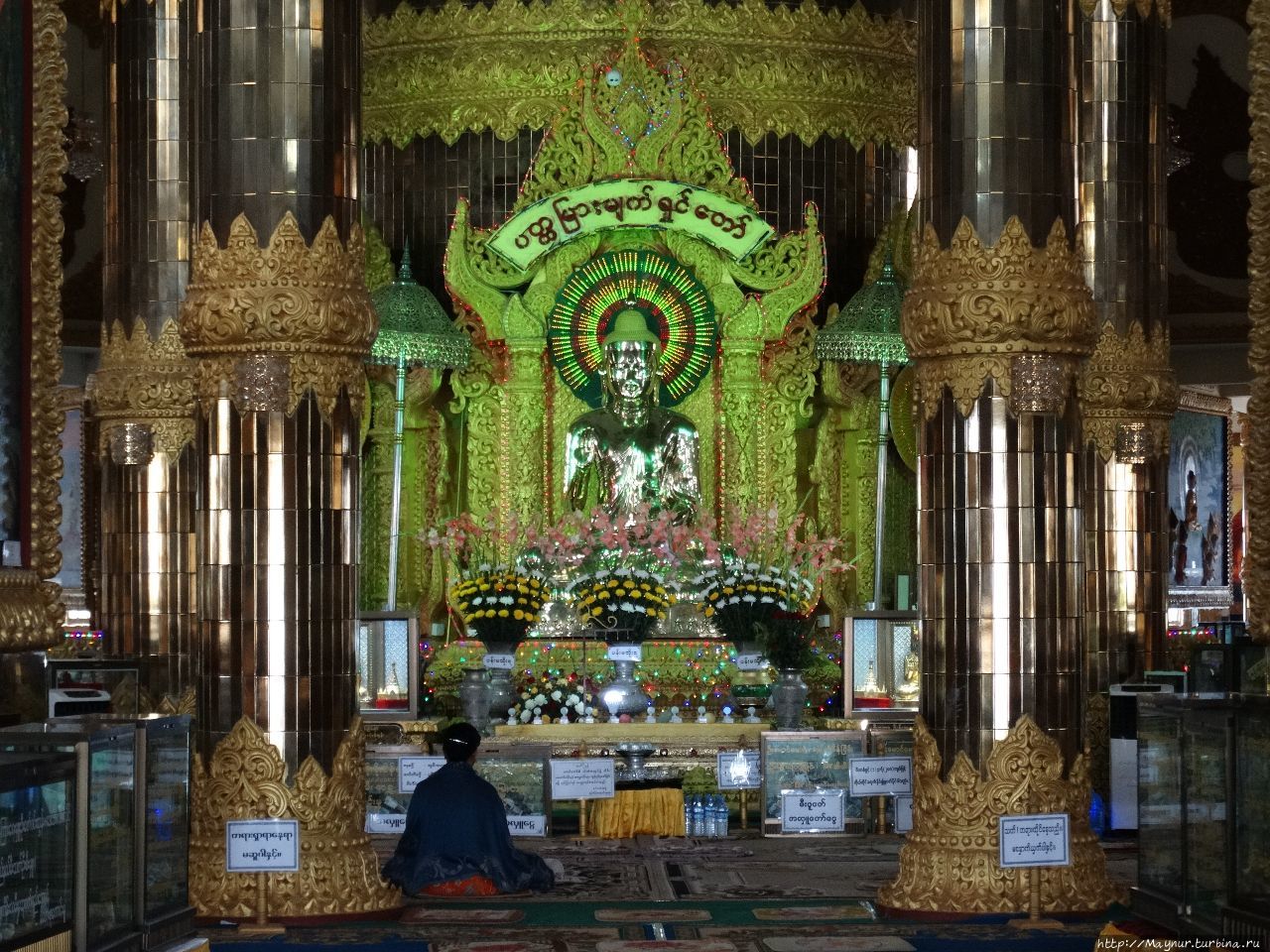 зашли во внутрь и замерли в восхищении...Обычно все храмы в Мьнме внутри имееют квадратное сечение, со статуями Будд, сидящими в направлении четырех сторон света, и ограниченное пространство.