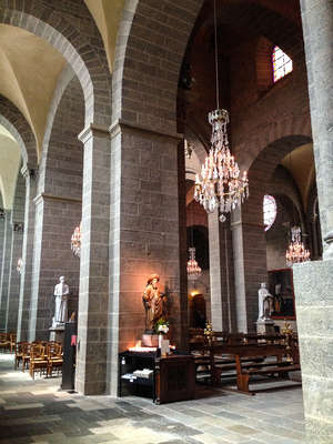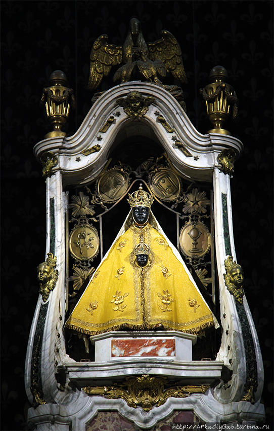 Основной реликвией собора является черная мадонна в раскинутых кружевных и золотых одеяниях. Это копия, причем вполне современная. Оригинальная Дева не выдержала революционного пламени в груди трудового народа и сгорела в 1794 году. Дубликату повезло значительно больше – ныне его холят, лелеют и даже выносят на прогулку 15 августа каждого месяца, а толпы верующих … ну и так далее.