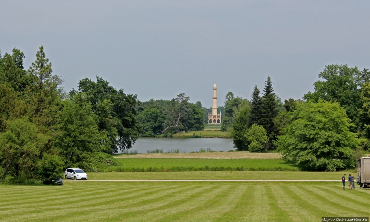 Самым известным строением считается "одиночный минарет". Нет, Лихтенштейны ни коем образом не имели отношение к исламу, просто высокую башню в самом конце парка архитекторы решили выполнить в форме минарета (да и мечети там рядом естественно нет). Сейчас на вершине минарета есть смотровая площадка...
