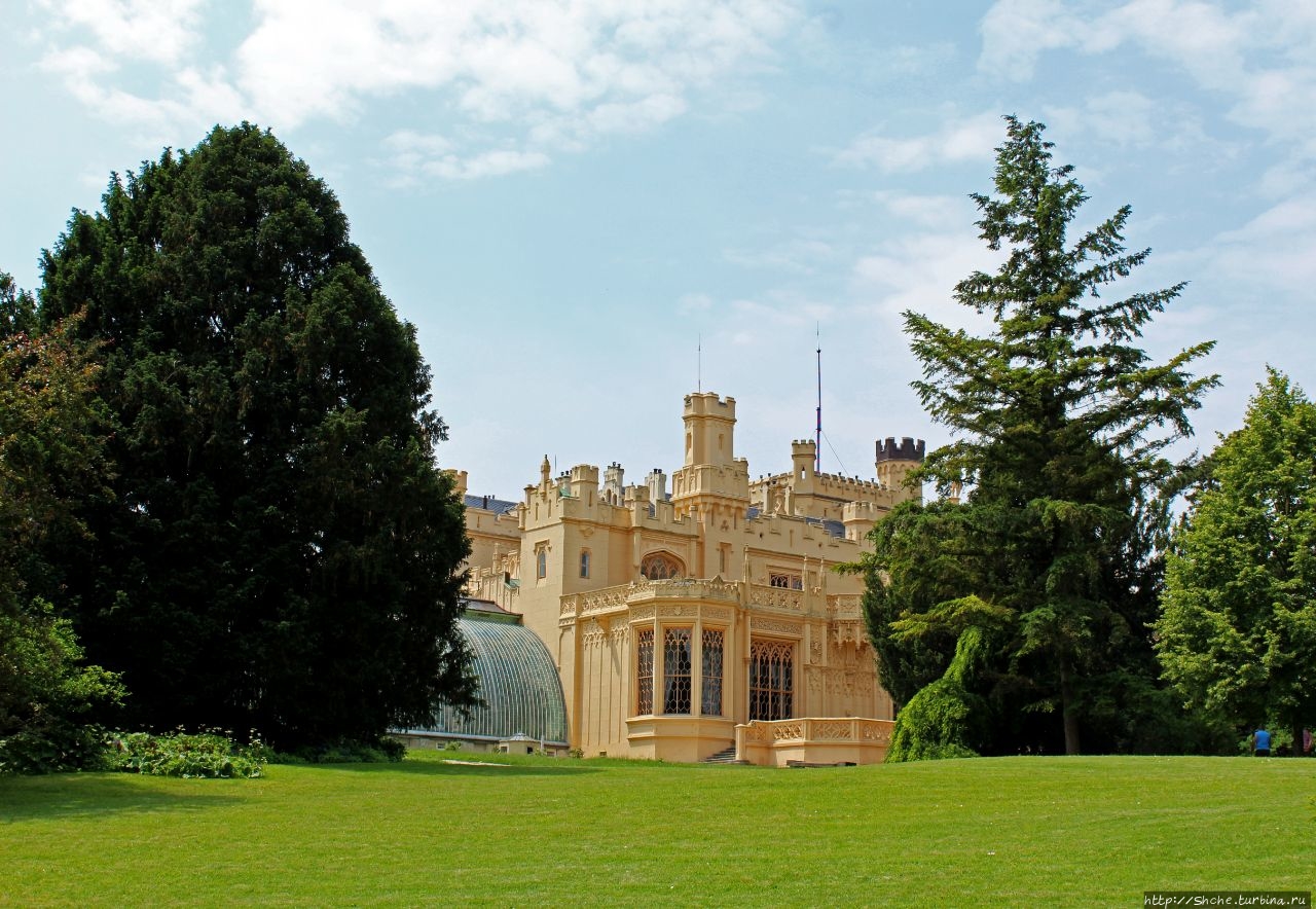 Романтический английский парк замка Лихтенштейнов в Леднице