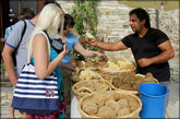 Около входа в музей часто можно встретить продавца натуральных мочалок. Гид сказал, что он такой один на всём острове, который сам без снаряжения ныряет за морскими губками на большую глубину.