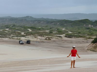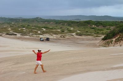 Минут через сорок паркуемся на границе лесостепи и больших дюн, дальше пешком. Удивительное дело: можно идти босиком, океанский ветерок так надёжно обдувает пески на 2,5 град. южной широты, что они вообще никогда не раскаляются.