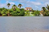 Под маркой "Lagoa Azul" продаётся более короткий восточный вариант. Едем туда. В любом случае сначала нужно доехать до одной из трёх переправ через реку Ленивцев (Rio Preguiças), и оптимальной сейчас стала средняя, Balsa do Porto Santo Antonio — она ближе к нацпарку, и до неё недавно дотянули асфальтированную дорогу из города.