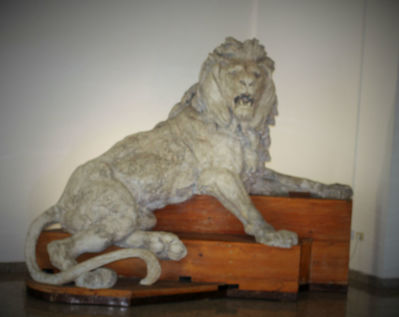 А в том, что слева от церкви, сбоку есть галерея, которая ведет на главную площадь. В этом переходе есть боковая дверь, в которую я заглянула случайно. Там, в углу, практически неосвещенный, сидит огромный мраморный лев.