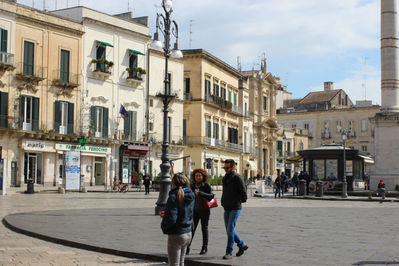 В отличие от белого города, Остуни, Лечче теряет часть своего очарования, когда нет солнца. Мокрые стены теряют свой сияющий, золотистый цвет. И, хотя скульптуры и барельефы удивляют своей красотой, исчезает ощущение чуда. И мы отправляемся дальше.