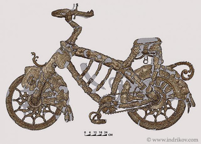 Однако, сколь ни бились светлые умы, сколько ни переставляли местами непонятные фрагменты, в итоге у них выходил ВЕЛОСИПЕД и ничего кроме велосипеда. Безумные сорви-головы тут же объявили на весь мир о сенсации. Полистав старинные фолианты, включив неуемную фантазию и, по-моему, всласть покурив то, что при раскопках курить строго воспрещается, они пришли к феноменальному выводу: в средневековье существовал героический отряд рыцарей-велосипедистов, сеющий страх в противнике и несущий на своих колесах славную викторию.