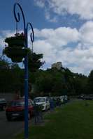 От стоянки до замка метров 100-150 по хорошей дорожке. Кстати, удачно решено автодвижение. Если заезжали мы по кругу к замку, то спускаемся прямиком в центр городка. Движение одностороннее и проблем с разъездом не возникает. Подходим к замку и видно, что время и капуцины не особо его щадили.