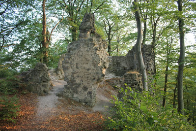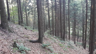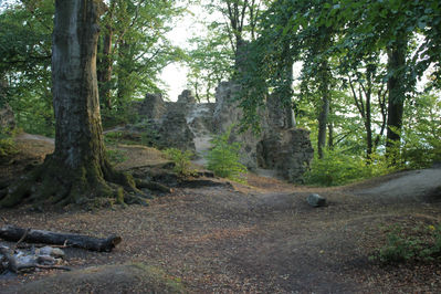 Поставив машину на стоянку, мы с картой и компасом отправились на покорение холма. Сначала решили немного потренироваться и найти насколько контрольных пунктов на местности. Для этого пришлось обойти холм со всех сторон. Что это нам дало? Оказывается многое. Стандартный турист пойдет к замку по промаркированной тропе и увидит только одну сторону укрепления. Наш вариант предлагает осмотреть замок со всех сторон.