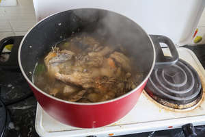 В Либерии (и вообще в Западной Африке), если блюдо мясное, то очень часто оно включает в себя и курятину, и свинину, и рыбу, и морепродукты и всё-всё-всё что угодно, то, что доступно на данный момент, таким образом получается мясное ассорти. А вот наполнитель в разных случаях разный, он и определяет характер блюда и его название. И сегодня наполнителем нашего африканского либерийского кушанья будут листья сладкого картофеля. Потому и называется это блюдо не иначе как “зелень сладкой картошки” (sweet potato greens).
