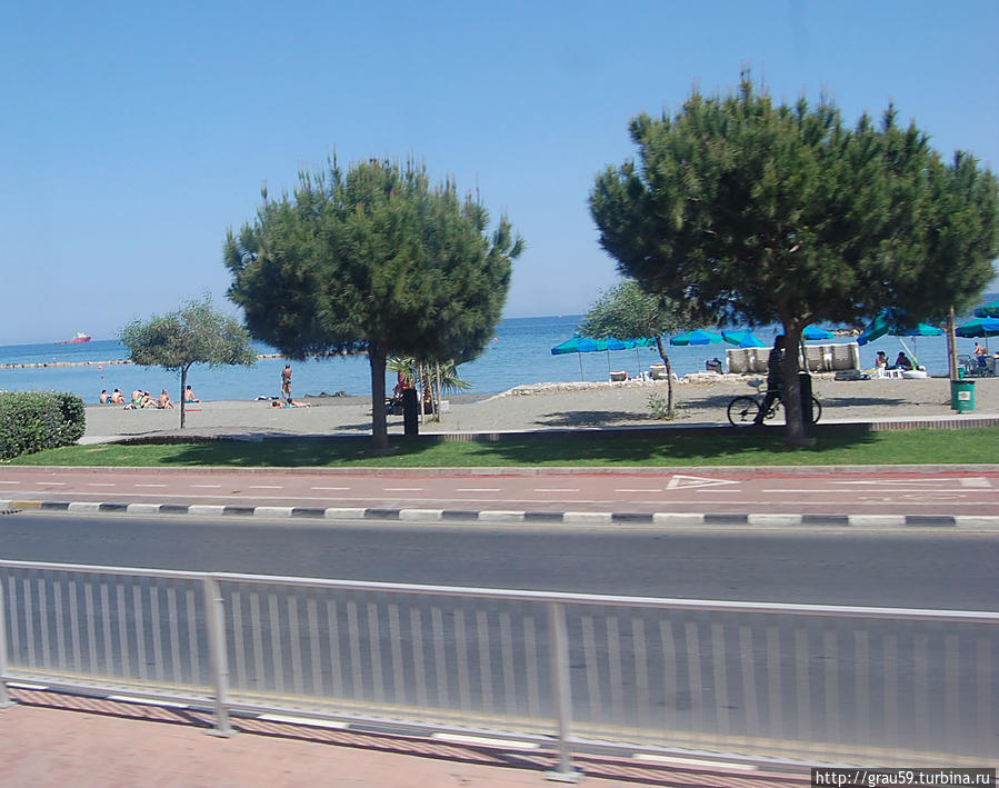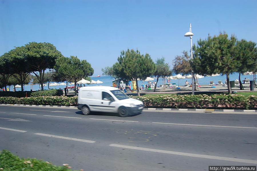 Вот так выглядят прибрежные улицы и пляжи Лимассола из окна автобуса, на котором я ехал из Ларнаки в старый порт Лимассола, а затем обратно.