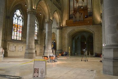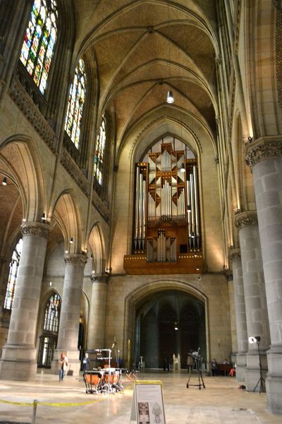 Входим в храм и понимаем, что время выбрано не самое удачное. Здесь ведётся подготовка к концерту и, судя по инструментам, не органному. Часть залов перекрыта и к ним нет доступа, при этом нас ещё и поторапливали.