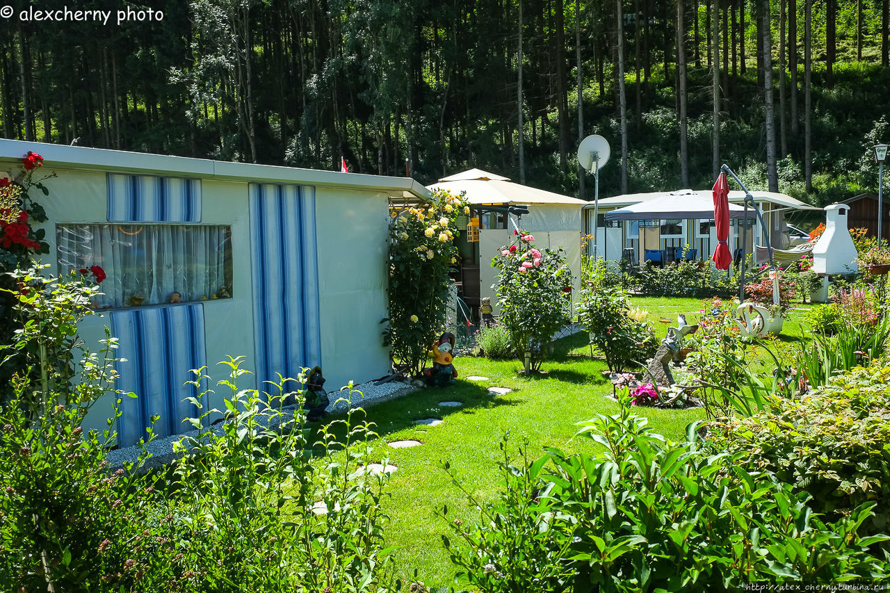 Велодорожка петляет то в идиллической тени деревьев, то выводит на пологие берега, и мы едем мимо организованных кемпингов. Самый большой Kaizerhof, где больше 100 мест с водоснабжением и канализацией, здесь очень много не только велосипедистов, но и автотуристов. Вот так и мы примерно катим, налегке.