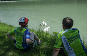 Но вода в Дунае для июля все-таки прохладная. Прохладная для людей, но плавают лебеди, которых можно покормить, что многие и делают.