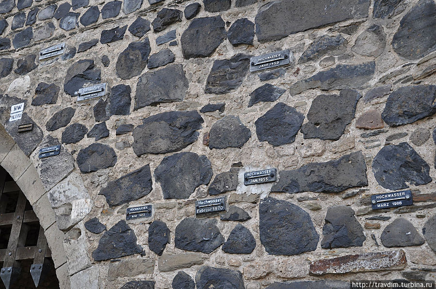 Здесь же на стенах, можно увидеть таблички, на которых указаны год разлива Рейна и его уровень.