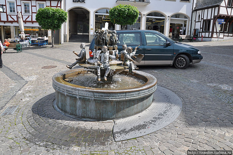 Перед ратушей можно увидеть вот такой симпатичный фотнтан (Ratsbrunnen), построенный в 1993 году скульптором Б.Штирбергом. "Изюминка" фонтана в том, что большие фигурки имеют подвижные части тела.
