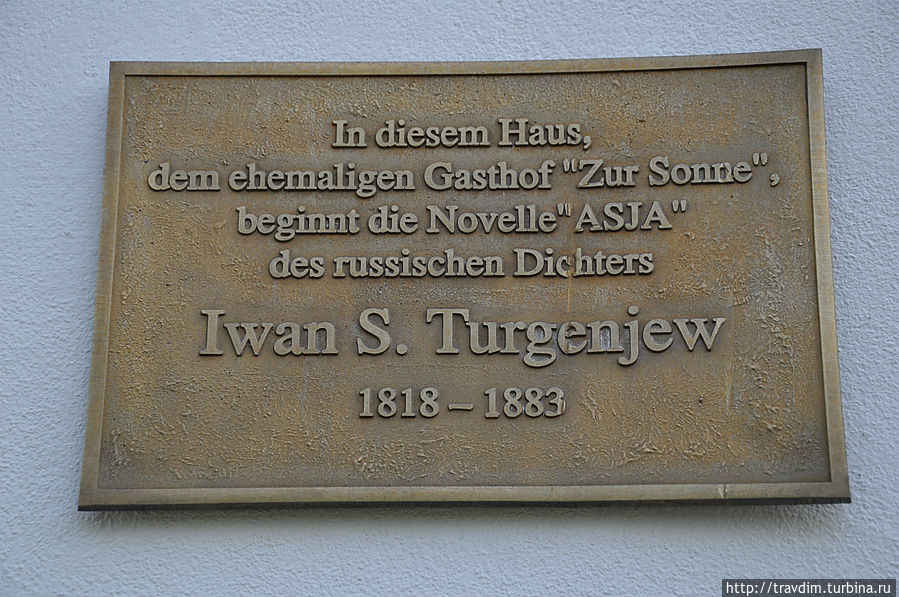 В этом доме, когда-то была гостинница, в которой останавливался и жил писатель Иван Сергеевич Тургенев, создавая очень трогательную, нежную и лирическую повесть "Ася".