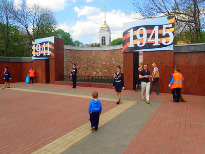 Везде чувствуется атмосфера Праздника, многолюдно, как всегда на 9 Мая на Площади Героев.