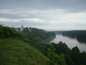 Небо полностью заволокло низко плывущими облаками, накрапывал мелкий дождик, все промокло, и деревянные ступеньки, и трава, и обувь. Наша машина одиноко стояла на парковке под дождем у информационного щита с надписью — Liskava. Пронеслась мысль — зачем сюда поперлись, сейчас спокойно могли пойти в бассейн в Друскининкае. Но через мгновенье в облаках появился просвет, блеснул одинокий солнечный луч, подул теплый ветерок. Раз приехали, решили — пройдемся, посмотрим, и мы двинулись в путь по тропинке на вершину среднего из трех холмов, расположенных над Неманом.