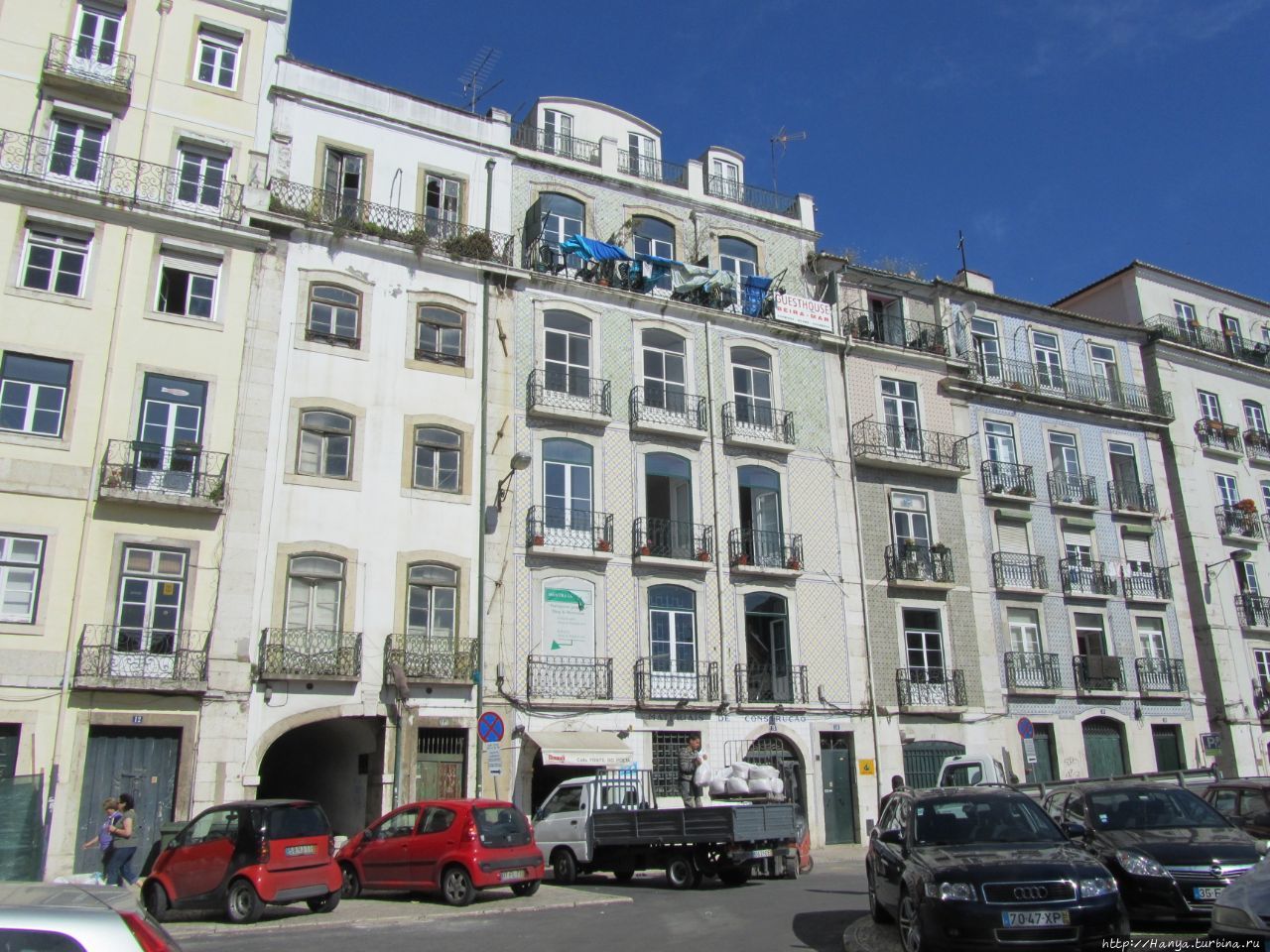 Керамические панели азулежу в Алфаме. Ч.120), еще можно найти много чего интересного, но у нас есть определенный маршрут, которому мы следуем, в надежде успеть увидеть все намеченное в последний день. А ищем мы необычный дом, Каза душ Бикуш (Casa dos Bicos), который славен своей затейливой архитектурой. Он еще известен как Casa de Bres de Albuquerque, или Дом с шипами, и свое название вполне подтверждает внешним видом. Этот исторический дом был построен в начале 16 века в окрестностях Алфамы, у него любопытный фасад, отражающий влияние ренессанса и мануэлино. Дом был расположен к востоку от Праса-ду-Комерсио, недалеко от места, где располагались la Alfândega (Таможня), «Tribunal das Sete Casas» и «Ribeira Velha» (рыбный рынок и плодоовощная база с продовольственными и винными рынками).