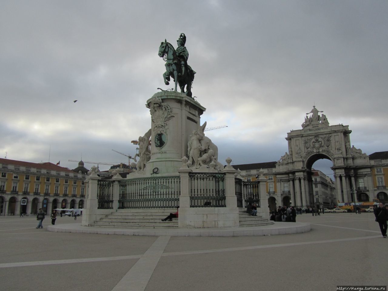Знаменитая желтая Дворцовая площадь Лиссабона. Ч.66), в центре которой возвышается конная статуя из бронзы, посвященная королю Хосе I (King Joseph I of Portugal, или D. José I), в период правления которого произошло ужасающее землетрясение. Королевский конь попирает аллегорических врагов в виде встретившихся на его пути змей.