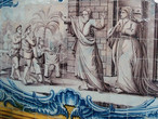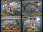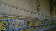 Залу опоясывают богатые плиточные панно с медальонами, на которых изображены сцены из жизни Святого Иеронима