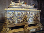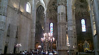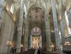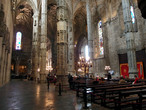 Проходя вовнутрь, мы попадаем в волшебный храм из трех нефов, поддерживаемых элегантными колонами, с уникальным по красоте стрельчатым сводом.