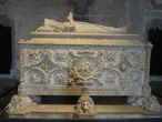 В полумраке, нереальном и торжественном за счет цветных лучей, проливаемых витражами, стоят по обе стороны от западного входа гробницы Вашку да Гама и Камоэнса.