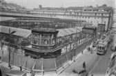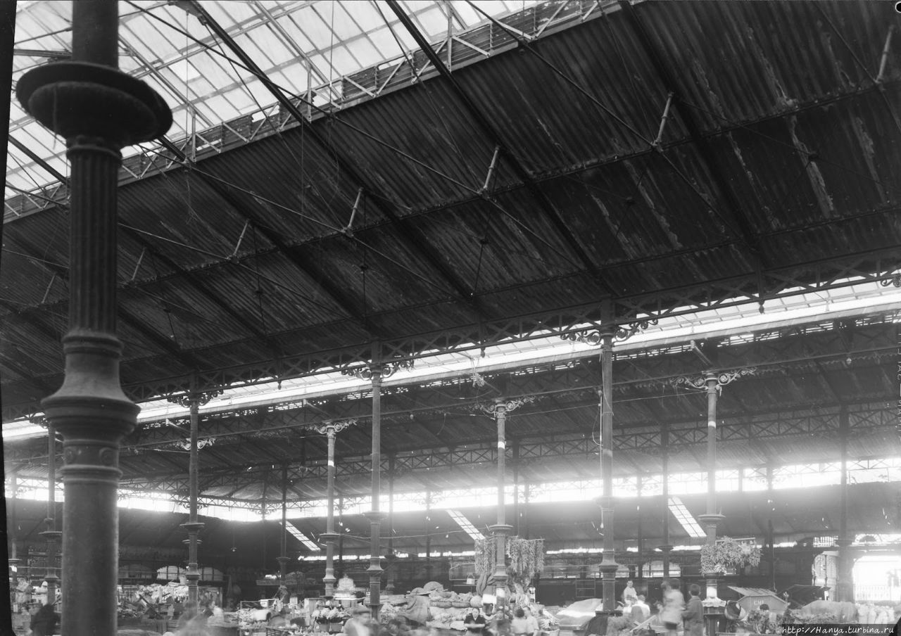Внушительное железное здание занимало площадь 8000 квадратных метров, с тремя проходами и четырьмя башнями, увенчанными куполами.Этот крытый рынок даже просуществовал на этом месте до 1947 года, когда его окончательно снесли. Огромное железное сооружение, занимавшее все центральное пространство площади, оказалось в металлоломе.