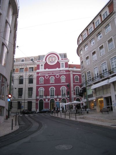 Обман зрения, мир искусства или реальность? Ч.92) возвышается здание Teatro da Trindade красного цвета. Расположенное между Шиаду и Байру Альту здание театра было возведено в 1867 году под руководством театрального продюсера Francisco Palha и в соответствии с проектом архитектора Miguel Evaristo de Lima Pinto. Поддерживаемая в нем атмосфера «маленького итальянского оперного театра» позволяет ему быть и сегодня одним из самых популярных в Лиссабоне. Театр является частью культуры каждого города, и Лиссабон не стал исключением. В нем существует множество театров, причем многие из них размещаются в красивых зданиях, имеющих историческое значение (