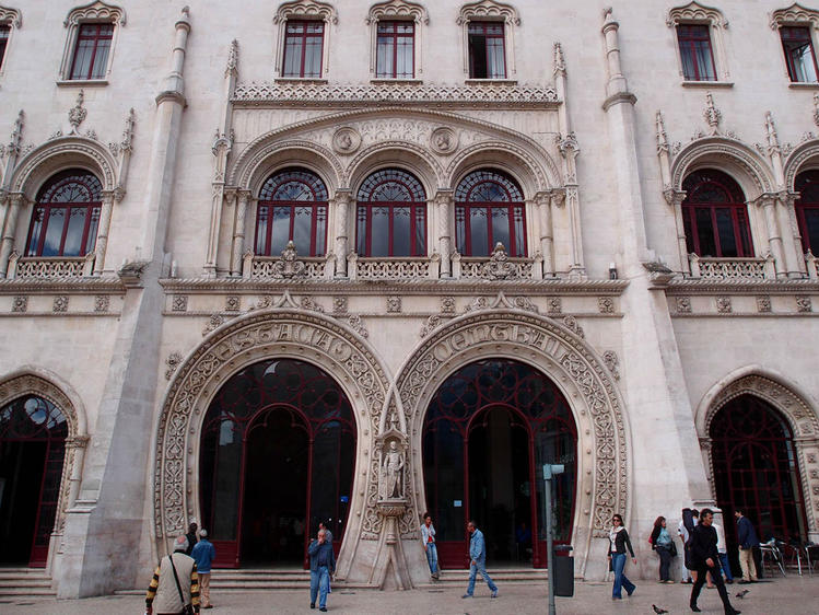Здание Росиу, построенное по проекту архитектора Жозе Луиша Монтейру, украшают многочисленные скульптуры, между ажурными подковами входов находится скульптура рыцаря, а балюстрады крыши, тоже ажурные, венчает небольшая башня с часами. Стиль постройки определяют, как нео-мануэлино, но больше всего здание вокзала напоминает небольшой мавританский дворец.