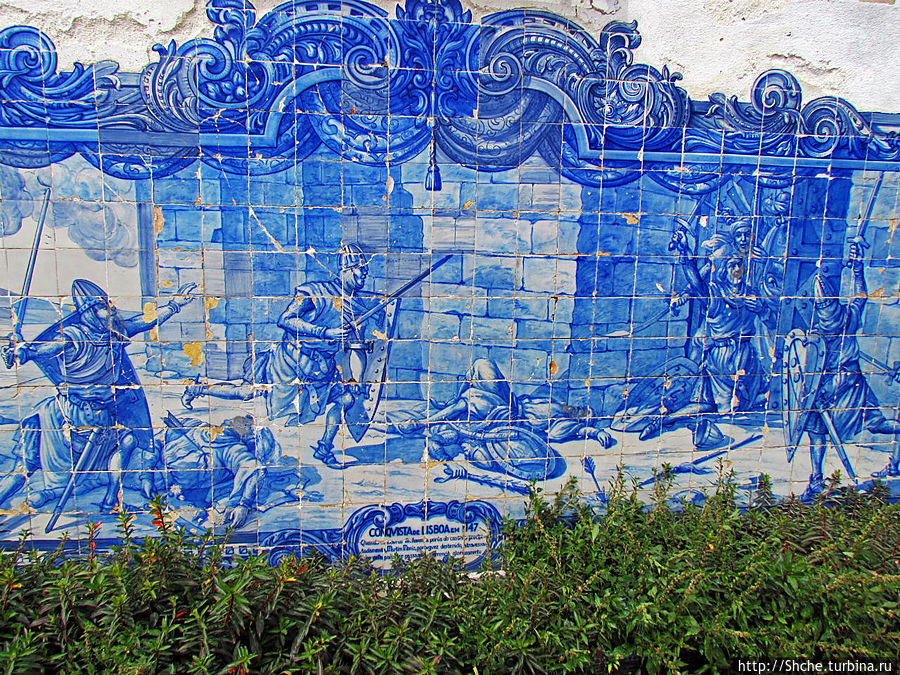 Еще советую заглянуть сюда ценителями азулежу — керамической художественной плитки. Здесь на боковой стене церкви просто шикарные несколькометровые образцы старого азулежу — просто художественные полотна, не меньше...