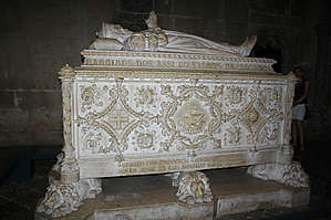 Перед плаванием в Индию здесь провёл ночь в молитвах Вашко де Гама, его могила находится слева от входа, а справа покоится поэт Луиш де Камоэнш.