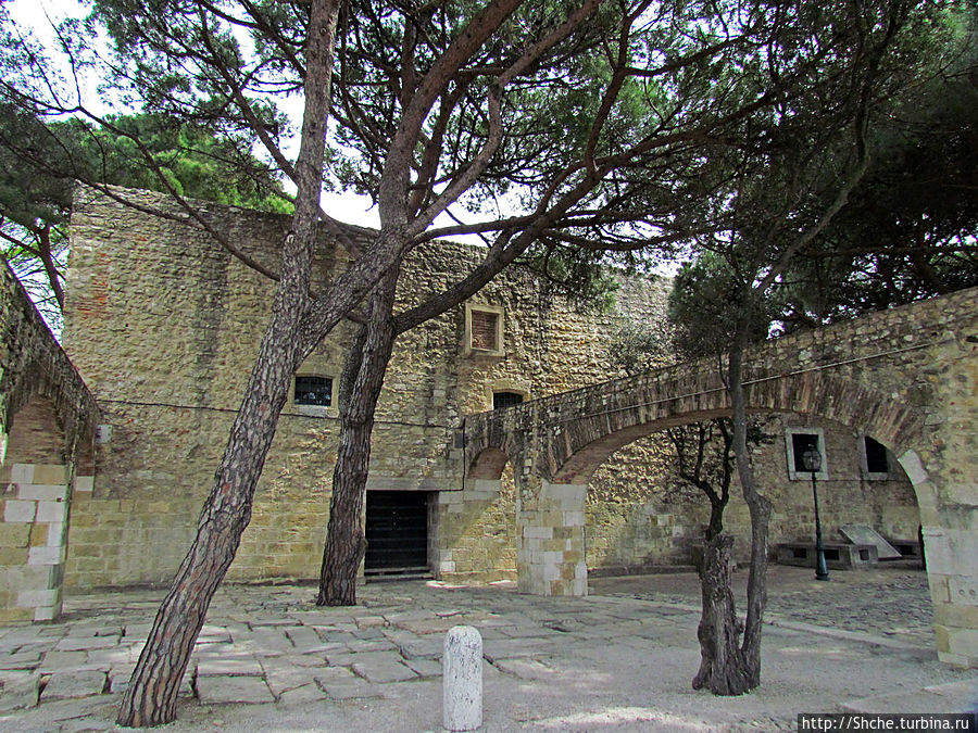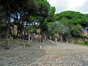 мы сперва попадаем на довольно большое пространство, занимающее практически всю вершину холма. Отмощеная булыжником территория, огражденная от города не высокой крепостной стеной, больше создает очень приятное впечатления очень большой красивой террасы с видом на город. Только не частые фортификационные сооружения и редкие пушки напоминают, что мы находимся на территории цитадели.