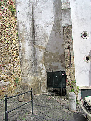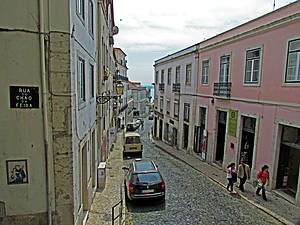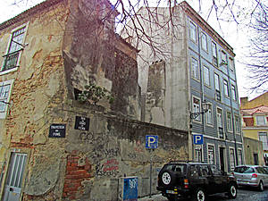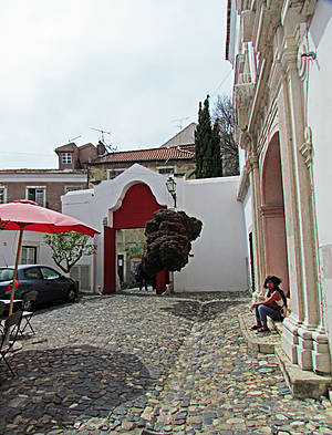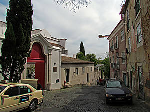 Мы подымались к крепости Сан-Жоржи вдоль трамвайного маршрута 28, и дошли до Largo Santa Luzia. Там трамвай продолжал свой путь вперед и по кругу (холм ведь, трамвай не умеет просто подыматься в крутых местах), а мы по карте поняли, что здесь можем прилично срезать, свернув влево в узкий переулок.