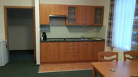 В числе удобств просторных апартаментов полностью оборудованная кухня, гостиная с обеденной зоной, уголок для отдыха с телевизором с плоским экраном и ванная комната с душем.