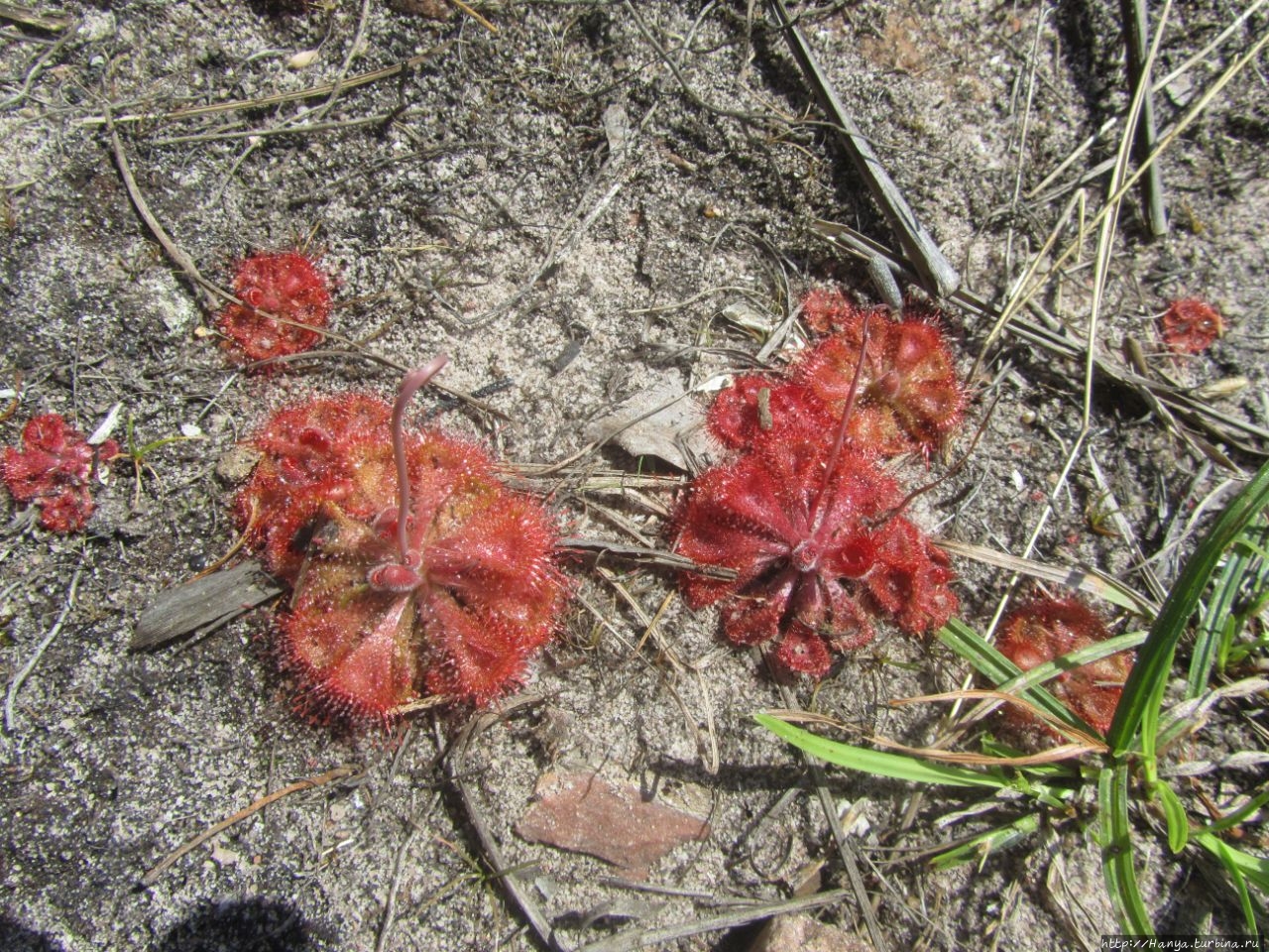 Здесь на открытом пространстве возвышенности, откуда из подземных источников и рождается Florence Creek, питающий одноименный водопад, по-весеннему яркая нежная зелень бушленда, и даже стрекозы здесь ярко-красного цвета, как и какие-то неопознанные нами растения. Солнце припекает, и купальник даже успевает просохнуть.