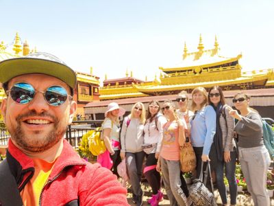 История самой святой статуи и храма в Тибете Но как оказалось, туда приехала какая-то делегация то ли коммунистическая то ли бизнесменов очень важных китайских, и билеты в храм продают только с 11:30. Для паломников вход бесплатный, но на паломников мы не очень похожи, поэтому надо покупать билеты и ходить в храм как все туристы когда положено. Поэтому мы прошли кору вокруг храма по улице Баркор. С трудом удавалось собирать женщин, которые разбрелись по магазинам. Каждый раз надо было напоминать, что у нас расписание. Если вы хотите увидеть всё тут, то давайте не ходить по магазинам. Для шопинга вечером будет свободное время.