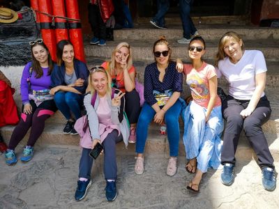 Одна девушка у нас потерялась, стала звонить нам из отеля, потому что там был интернет и она позвонила нам по Ватсапу. Мы вернулись в отель, забрали её и пошли в храм Джоканг. В храме потолкались немного, увидели самую святую статую Тибета, которую привезла китайская принцесса Венчен в седьмом веке, для того чтобы распространять буддизм в Тибете. Это статуя изображает Будду в возрасте 16 или 18 лет, и считается что увидеть эту статую большое благословение, как будто бы ты увидел исторического Будду. У меня прошлые разы удавалось попасть к статуе, обойти вокруг, но в этот раз там просто давка из тибетцев, и я решил поберечь женщин. Тем более они итак уже немножко за 2 дня перебрали информации о буддизме. Мы постояли напротив статуи, посмотрели, гид нас опять подгонял. Да что ты будешь делать с ним!