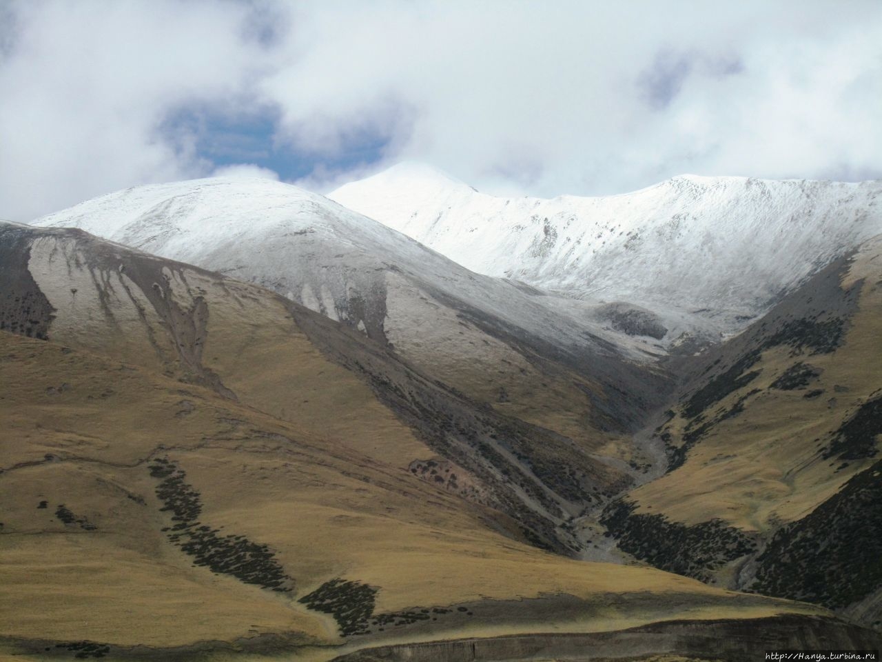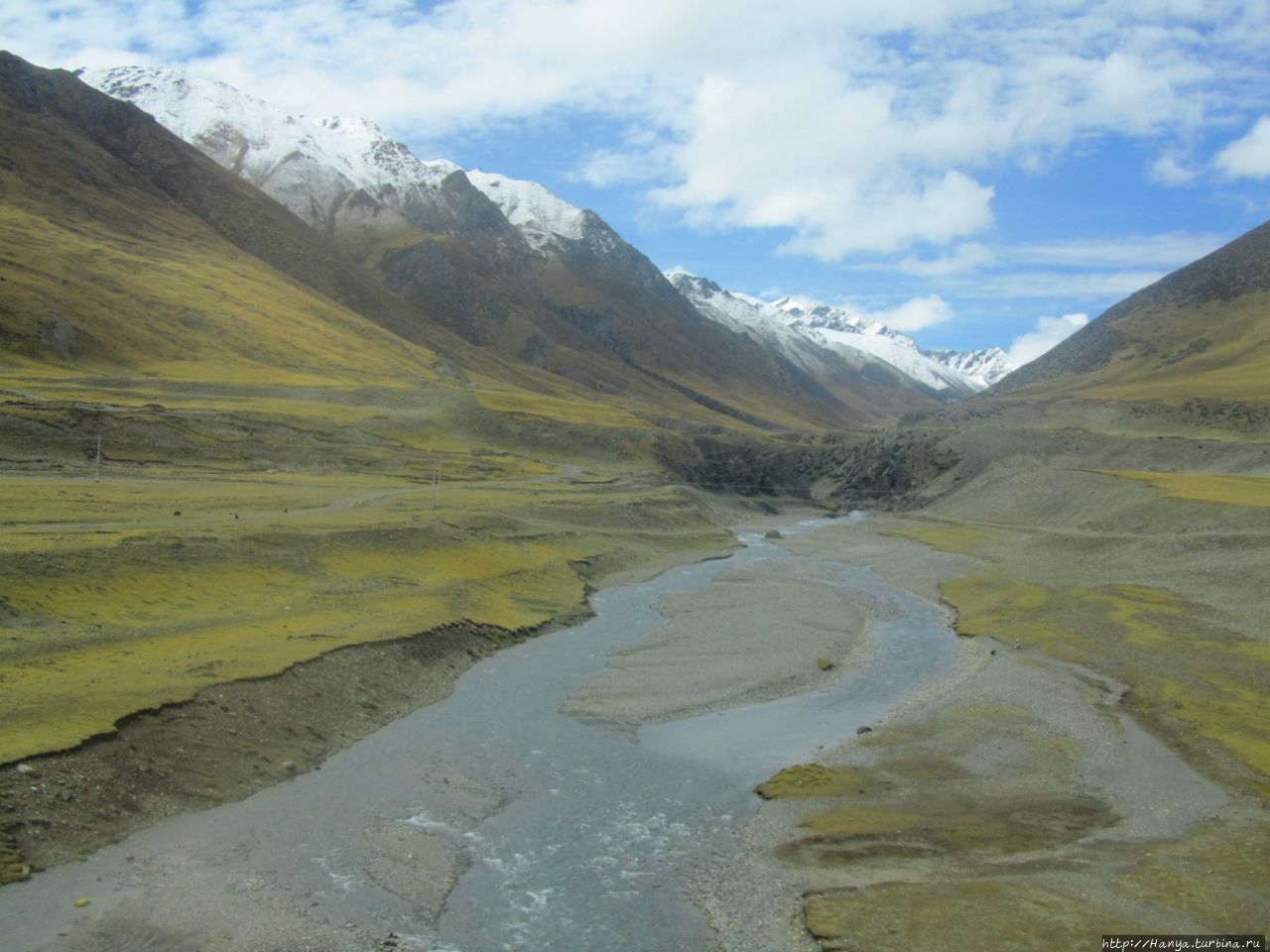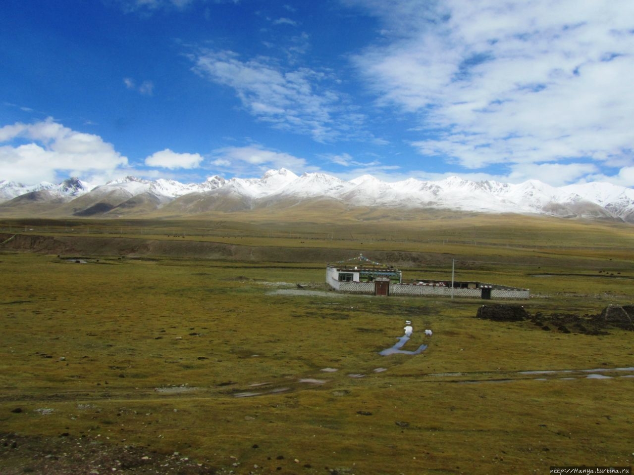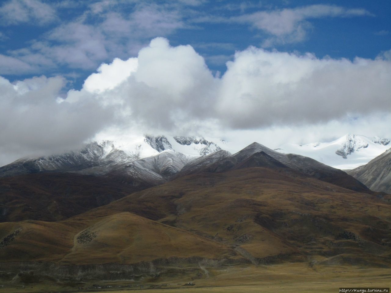 Складчатые горы, покрытые плюшевым нарядом, а за ними снежные утесы серьезной высоты, и мирно пасущиеся стада тибетских яков.