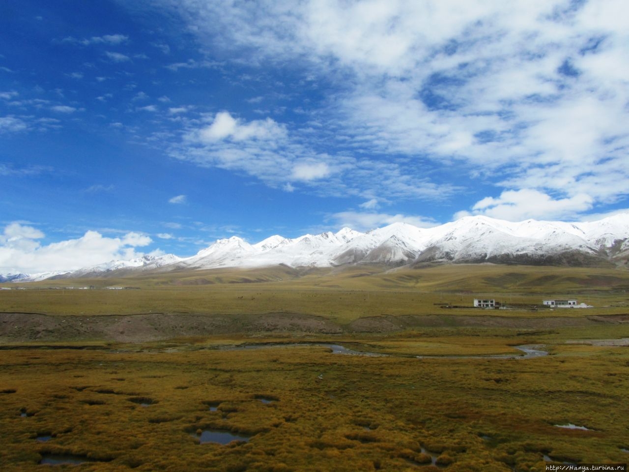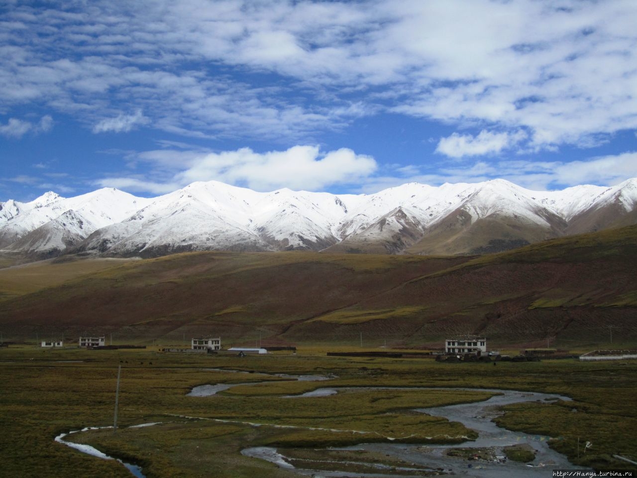 Постепенно на передний план выплывают заснеженные горы, которые издалека кажутся совсем невысокими холмами.