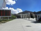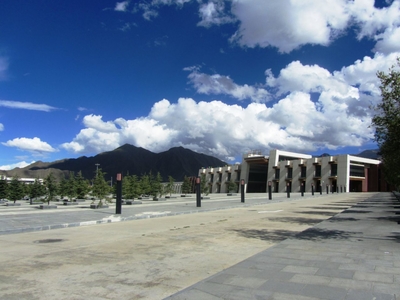 Пассажиры быстро рассасываются куда-то, и мы догоняем их на выходе из вокзала, где прибывшие проходят традиционную проверку билетов, но не только. Без пермитов-разрешений на территорию Тибета вас не пустят, здесь с этим строго. Вокзал Лхасы архитектурно решен в типичном тибетском стиле, имеет 5 этажей (так написано в интернете), но я сразу же задалась вопросом, зачем такое большое здание для вокзала с 6-7 парами поездов, ведь в Китае вокзалы используются строго функционально, и после прибытия поездов, этот вокзал быстро пустеет до следующего поезда. А может, построено с перспективой? Ведь строительство железной дороги продолжается и скоро из Лхасы туристы смогут попасть не только в Шигацзе, но и в столицу Непала (Катманду), а также в индийскую Калькутту. Кстати, отрезок Лхаса-Шигацзе введен в эксплуатацию в 2014 году (а я писала эти записки еще в 13 г.)