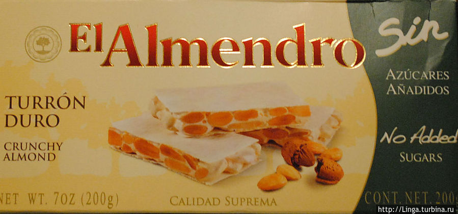 - Turron , по-каталонски torró, – традиционное рождественское лакомство из орехов, меда, нуги, сахара и яичных белков. Туррон известен в Испании как минимум с 16 века, когда его рецепт впервые упомянут в «Руководстве для женщин». Два вида туррона – blando (мягкий) и duro (твердый) – настолько отличаются друг от друга, что их легче принять за две разные сладости. Blando очень похож на халву, duro – на козинаки, в нем целые орехи скреплены смесью яичного белка, меда и сахара. А ещё существует множество вариаций на тему: туррон из орехов в инжирной массе, глазированной яичным белком, шоколадные турроны и т.д.