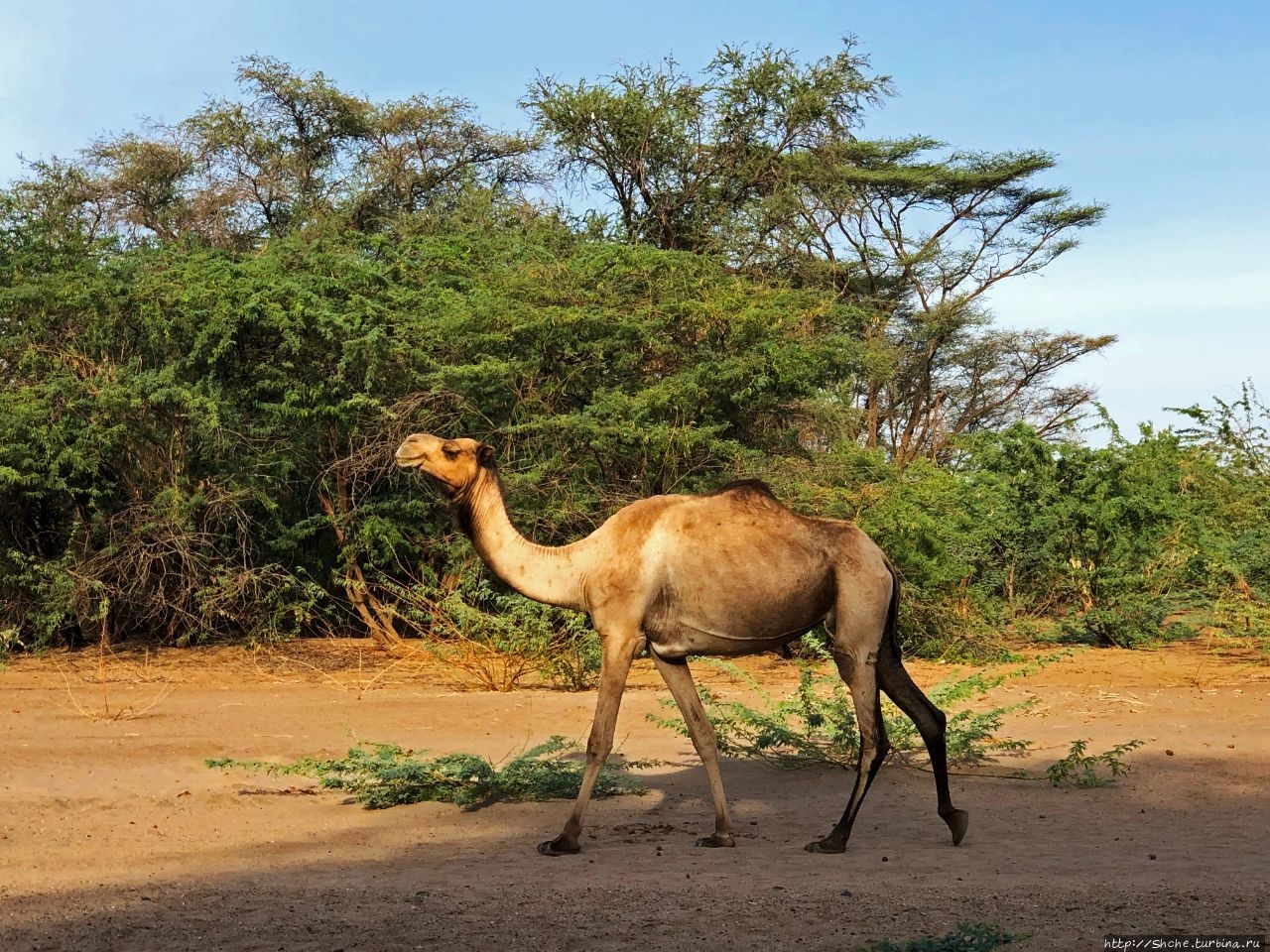 Это были обычные одногорбые верблюды дромадеры. Конечно, они не дикие, но никаких внешних признаков одомашнивания на них не было: ни уздечек, ни седел, никаких веревок, спутывающих ноги... Не было и погонщиков.