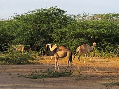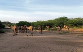 Когда мы проделывали обратный путь, то уже на подъезде к Лодвару в зарослях заметили стадо верблюдов.