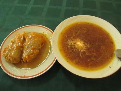 Комплексный обед — суп, компот и голубцы стоит менее 100 наших рублей