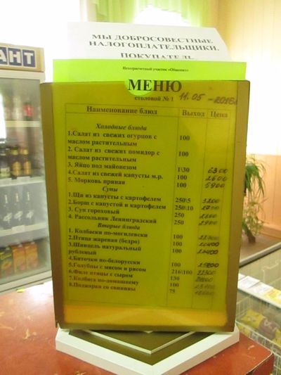 Меню, в наличии может быть не все, блюда советской и белорусской кухни