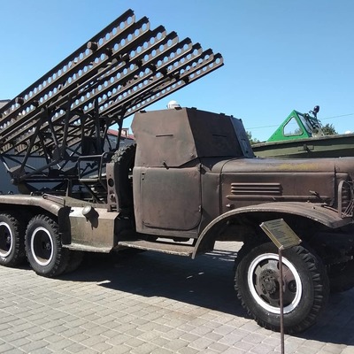 Самая интересная часть музейной экспозиции расположена снаружи, где на берегу Днепра более двадцати единиц боевой техники: самоходки, "катюши", Т-34 и пушки всех калибров.