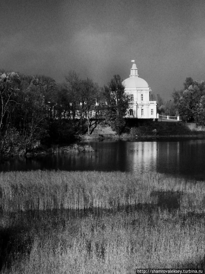 Обогнув по дорожке Нижний пруд и почти дойдя до территории крепости Петерштадт я на некоторое время остановился на смотровой площадке с которой открывался завораживающая перспектива на Японский павильон Большого дворца Александра Меньшикова отражавшийся в спокойных водах пруда.