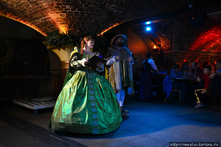 Посетителям предлагают трапезу, во время которой их развлекают персонажи XII-XVI веков: рыцари, трубадуры, фокусники, танцовщицы, менестрели, жонглеры. Действие сопровождается средневековой музыкой, исполняемой на старинных и не очень инструментах.